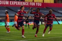 James made his second save of the night in the 66th after going to ground and stretching in a mad scramble to stop Miguel Berry’s shot from rolling across the line. He made another great save 4 minutes later when Tucker Lepley took a left footed shot on goal.