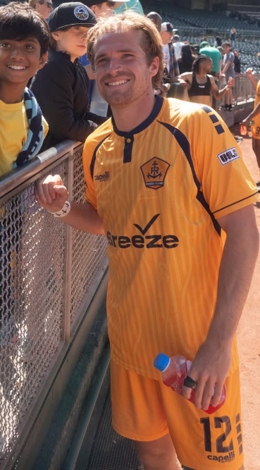 Clay Holstad poses with fans after a match versus Oakland Roots. Image Courtesy of Rhode Island FC.