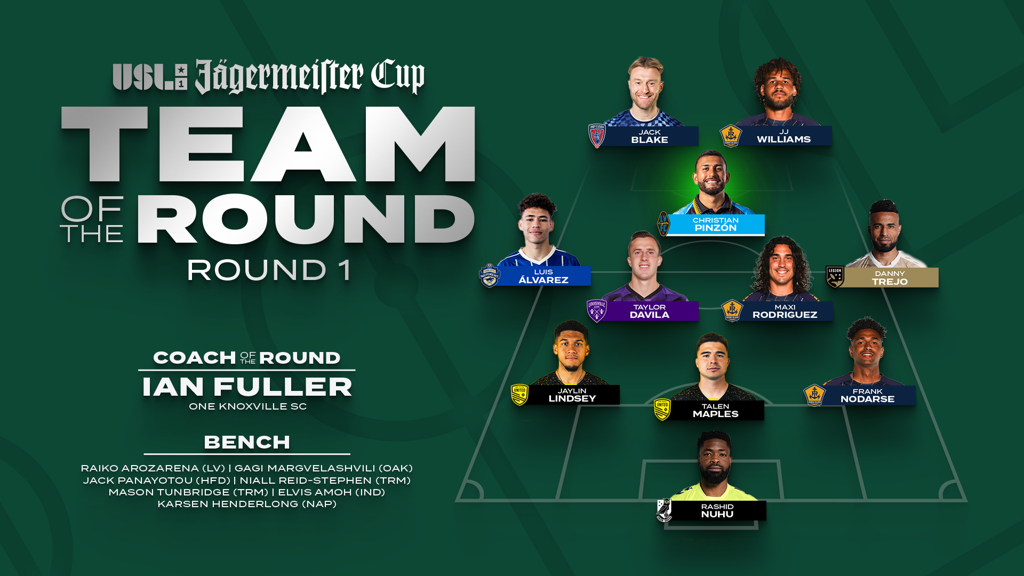This is JJ Williams’s first time making the USL Jägermeister Cup Team of the Round this season. He has been named to Team of the Week twice this season for Rhode Island FC.
