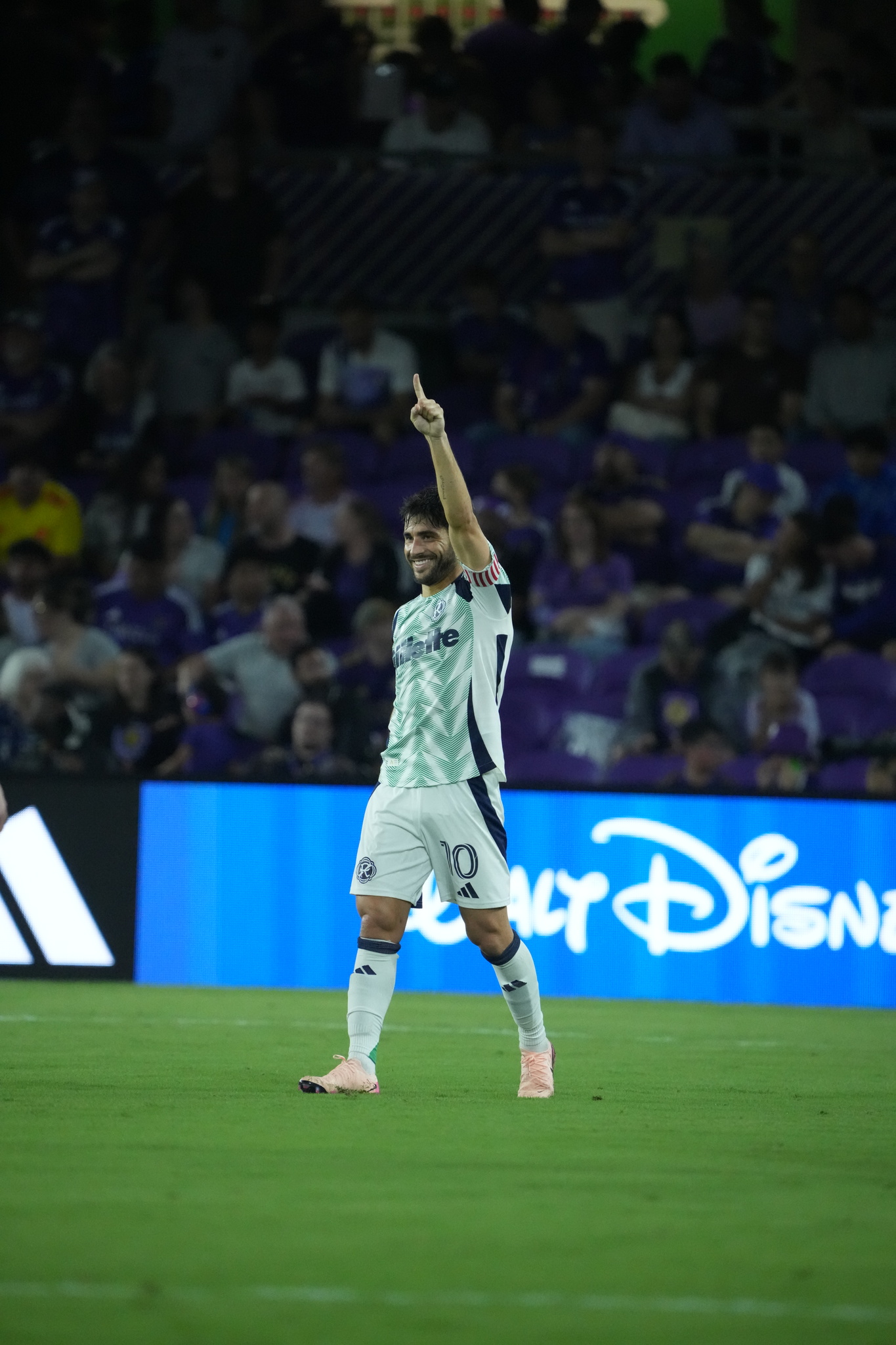 Carles Gil poses after scoring a goal versus Orlando City SC. Image Courtesy of New England Revolution.