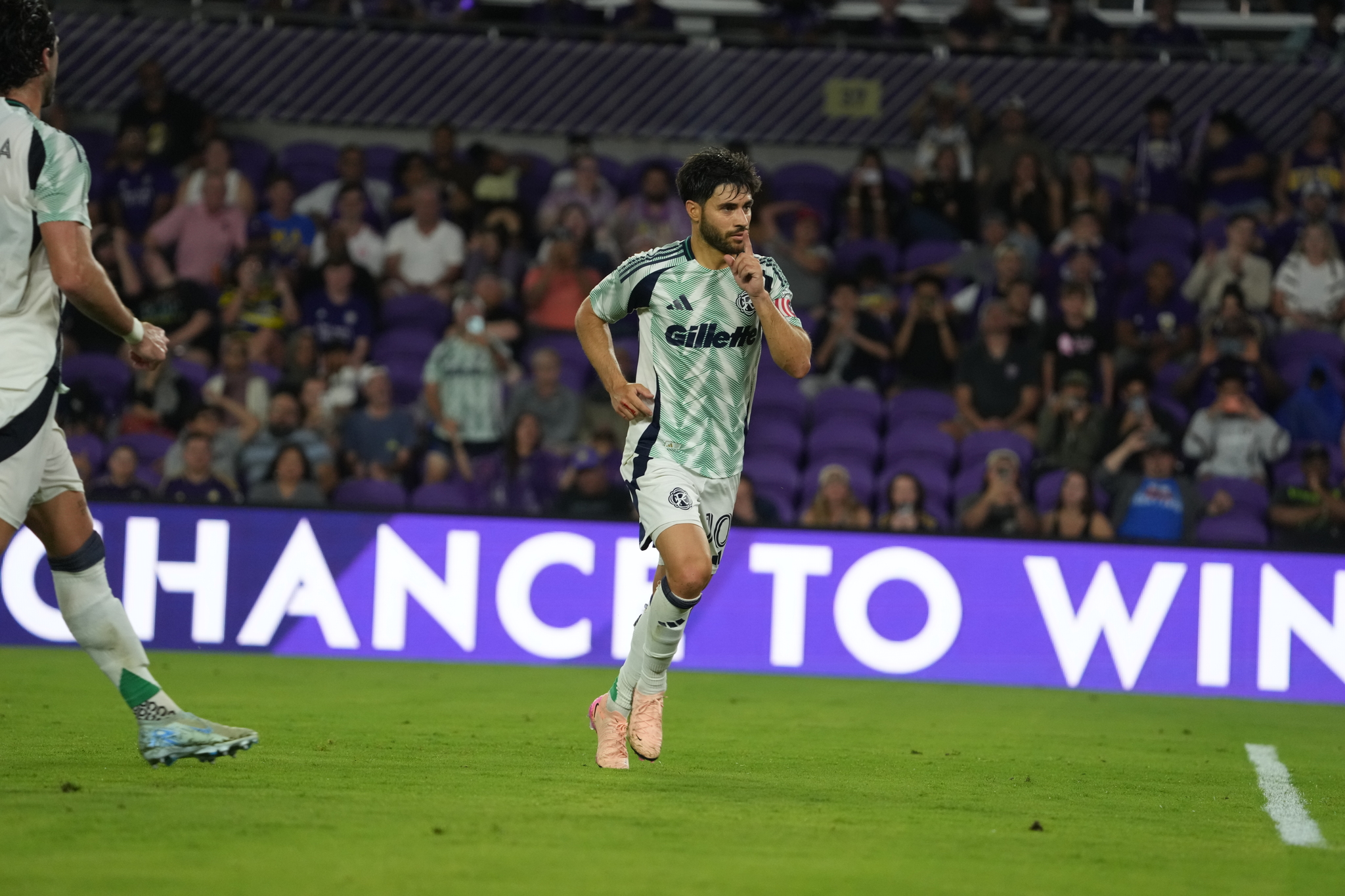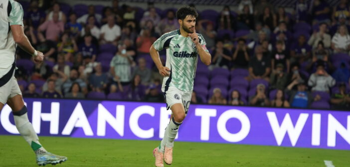 Carles Gil poses after scoring a goal versus Orlando City SC. Image Courtesy of New England Revolution.