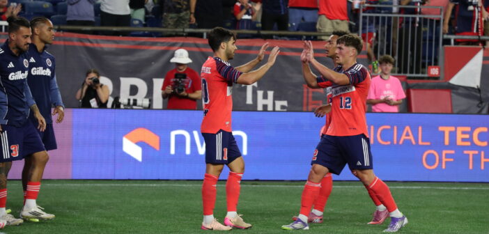 Carles Gil celebrates a goal during an MLS match versus Colorado Rapids. Image Courtesy of New England Revolution.