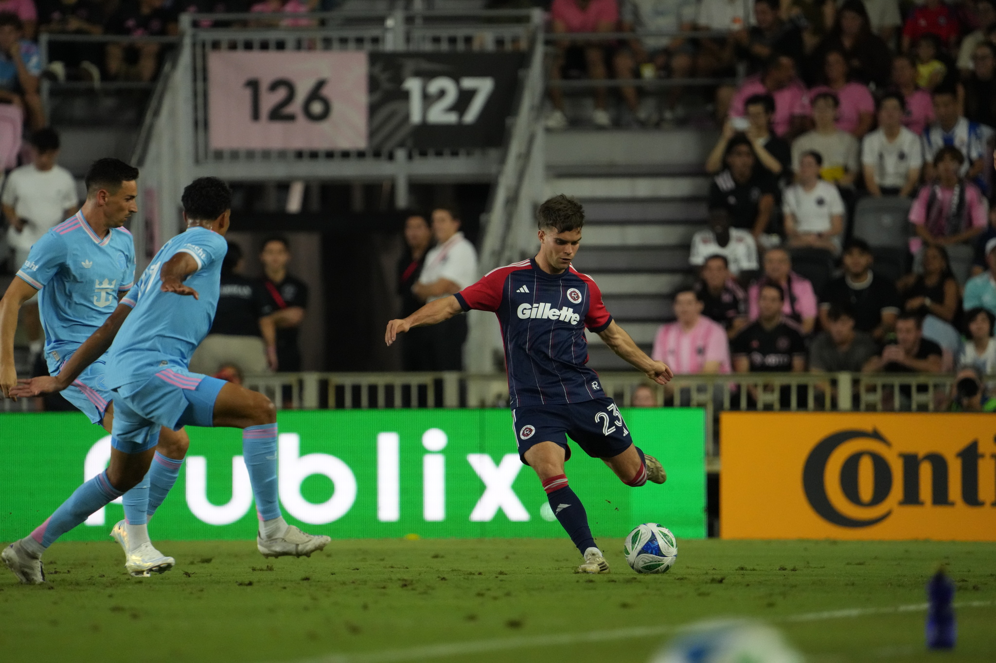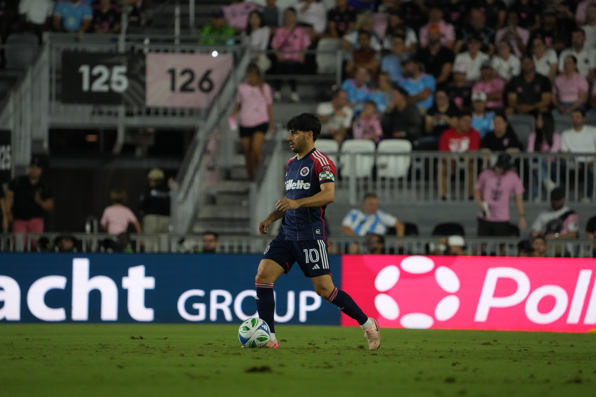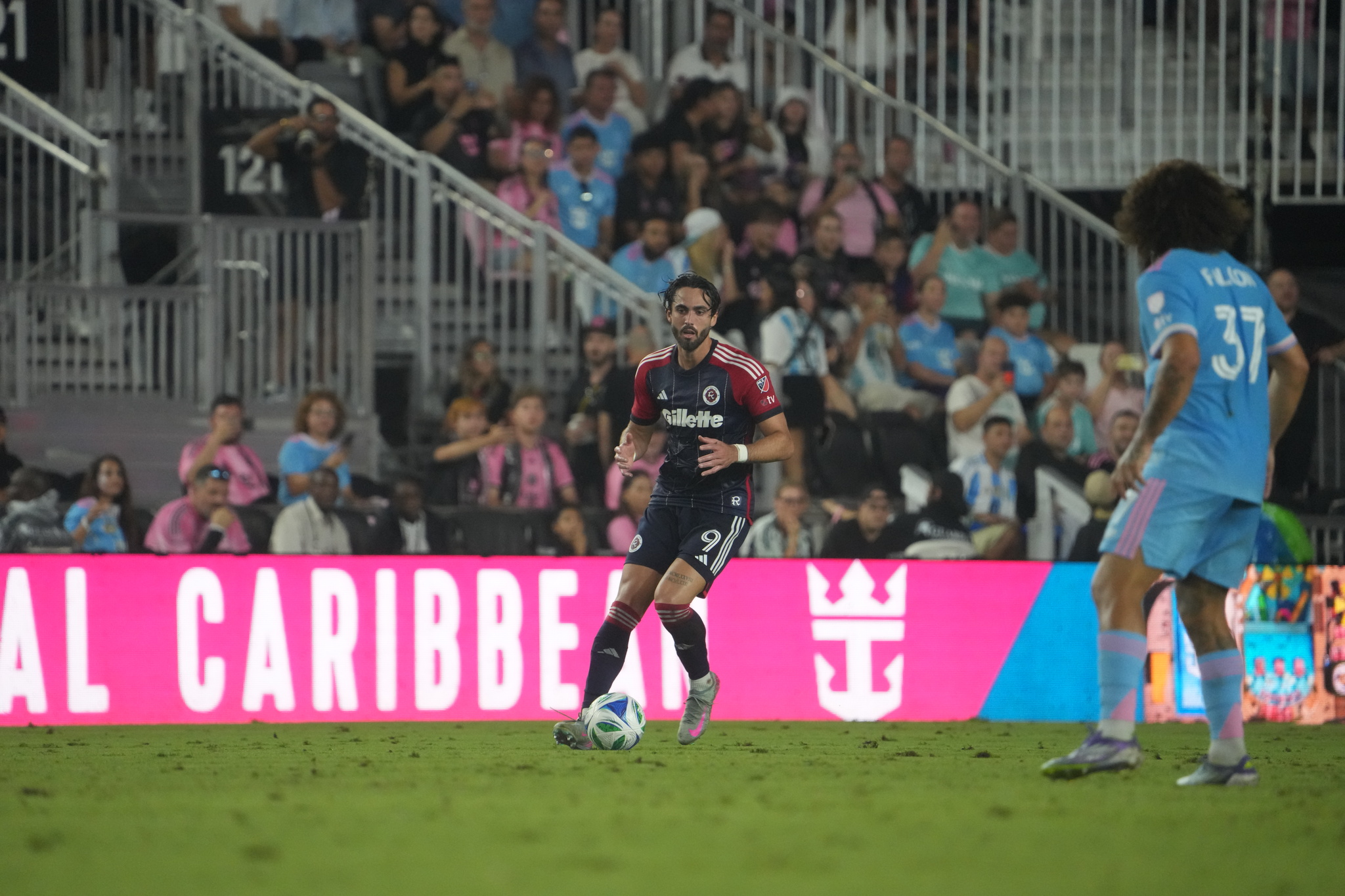 New England Revolution forward Leo Campana looks to make a play during an MLS match versus Inter Miami CF. Image Courtesy of New England Revolution.