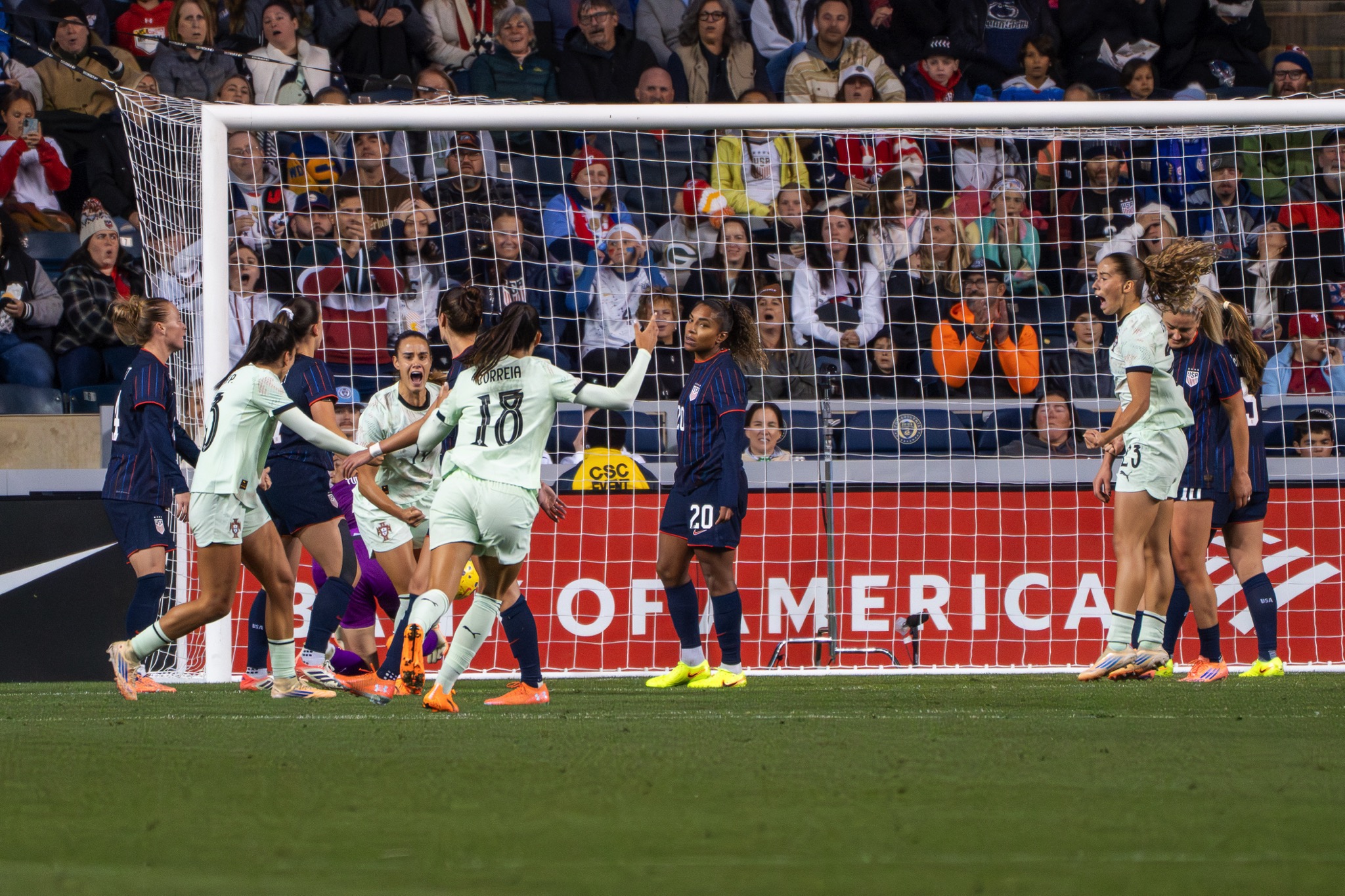 CHESTER, PA–It started well after 33 seconds, but two goals off corner kicks gave Portugal a surprise 2-1 win over the US Women’s National Team at Subaru Park. It was the first time the two sides had met since the 0-0 draw at the 2023 Women’s World Cup in Auckland.