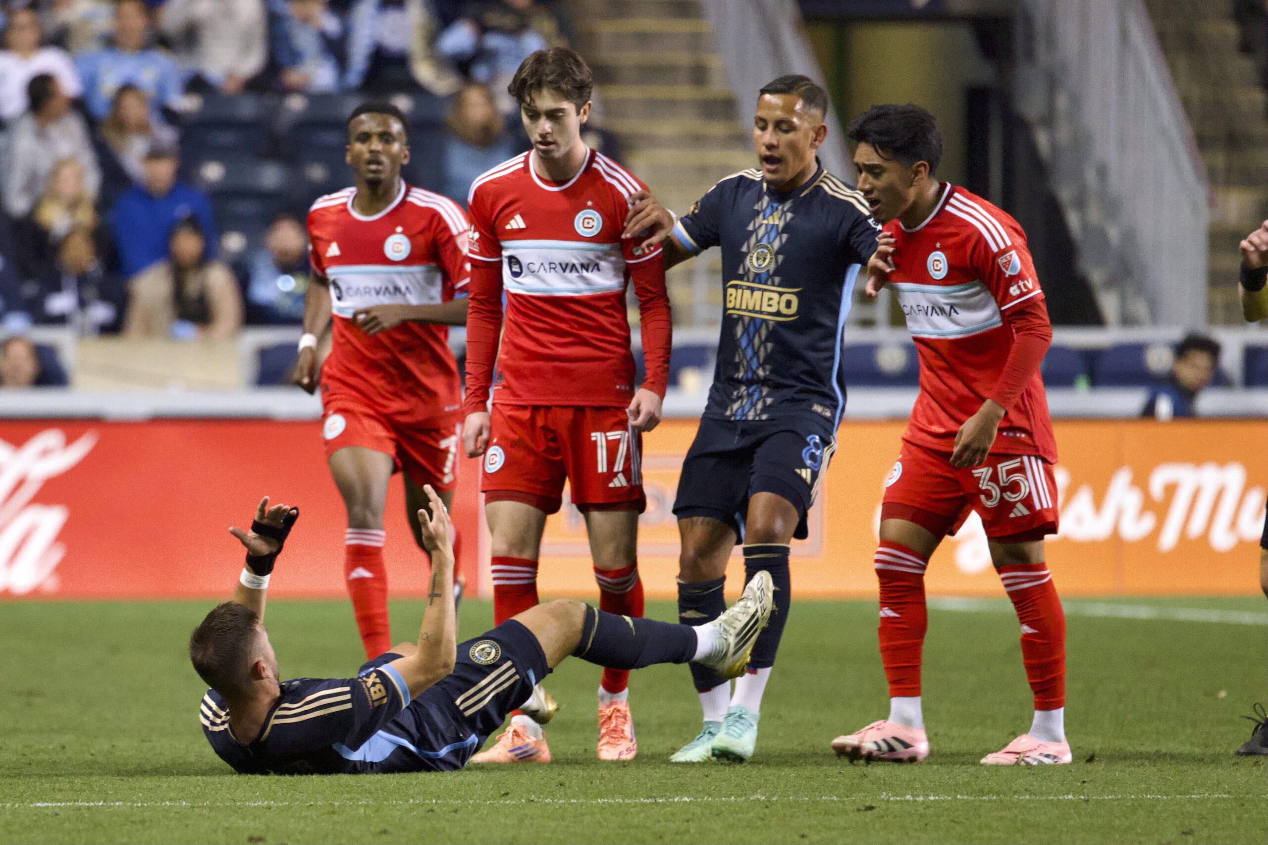 There were sore eyes in Subaru Park to see the former Union favorite, Jack Elliott, play for the Windy City.The Union’s Bruno Damiani reaching out in front of Chicago’s Jonathan Dean.Chicago’s Hugo Cuypers followed closely by the Union’s Jovan Lukic.Philadelphia’s Kai Wagner in full stretch.Wagner going down a second time after a shove by the red-carded Sergio Oregel.Oregal leaving the match after having been shown red.The prodigy Cavan Sullivan gaining minutes along side of Chicago’s Maren Haile-Selassie.