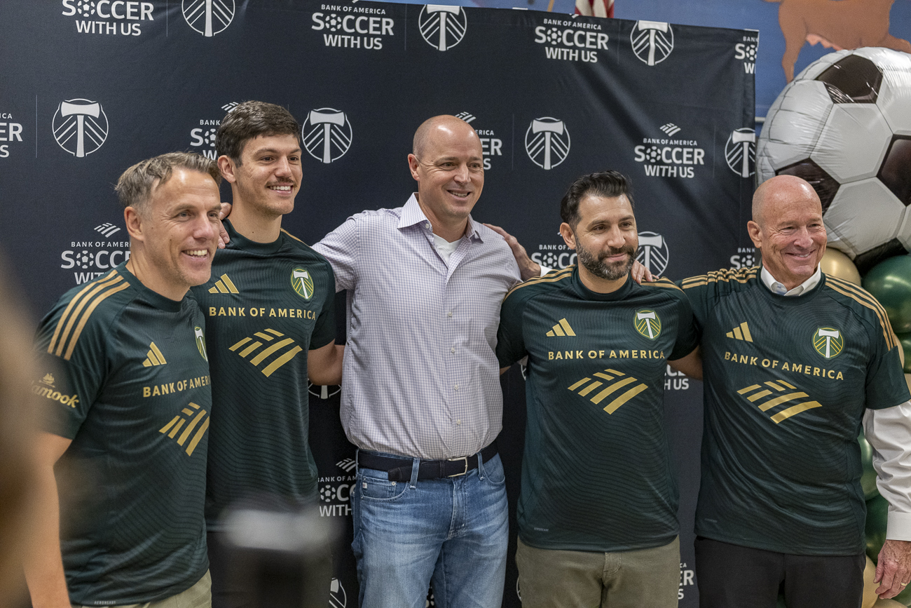 PORTLAND, OR – DECEMBER 9, 2025: Portland Timbers present their new sponsor for 2026 MLS Season, Bank of America (photo by Diego G Diaz/ProstInternational)