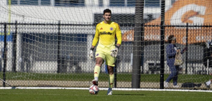 Alex Bono (24) appears in a 2026 preseason match for New England Revolution. Image Courtesy of New England Revolution.