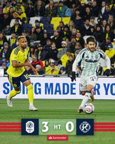 After the initial 45+7 minutes, the match entered halftime with Nashville ahead at 3-0.