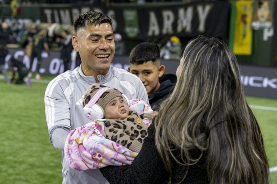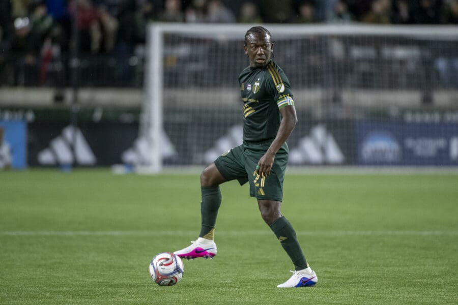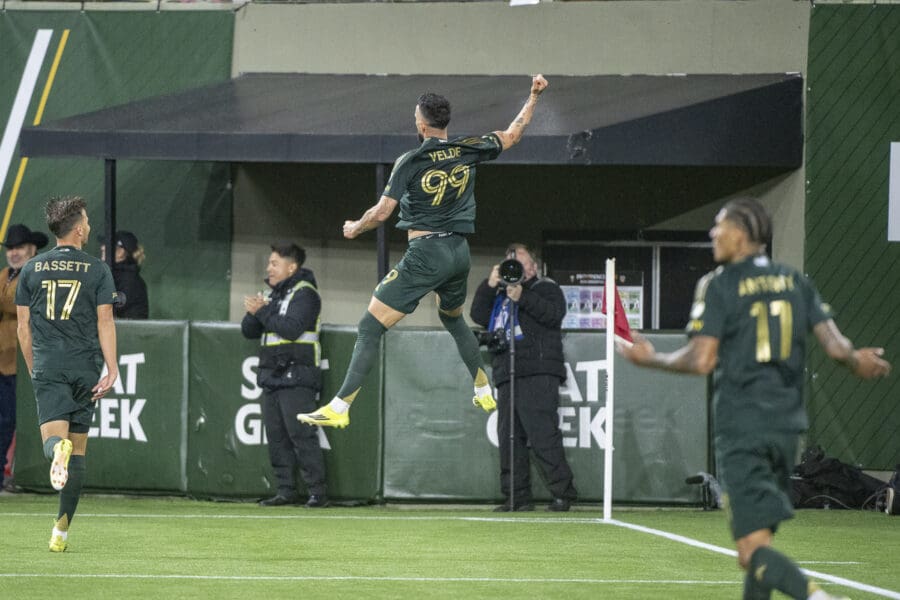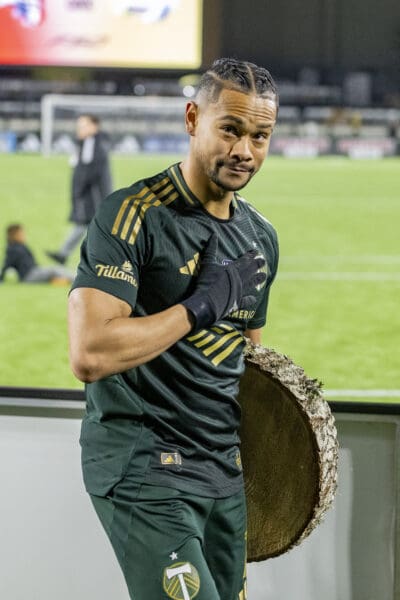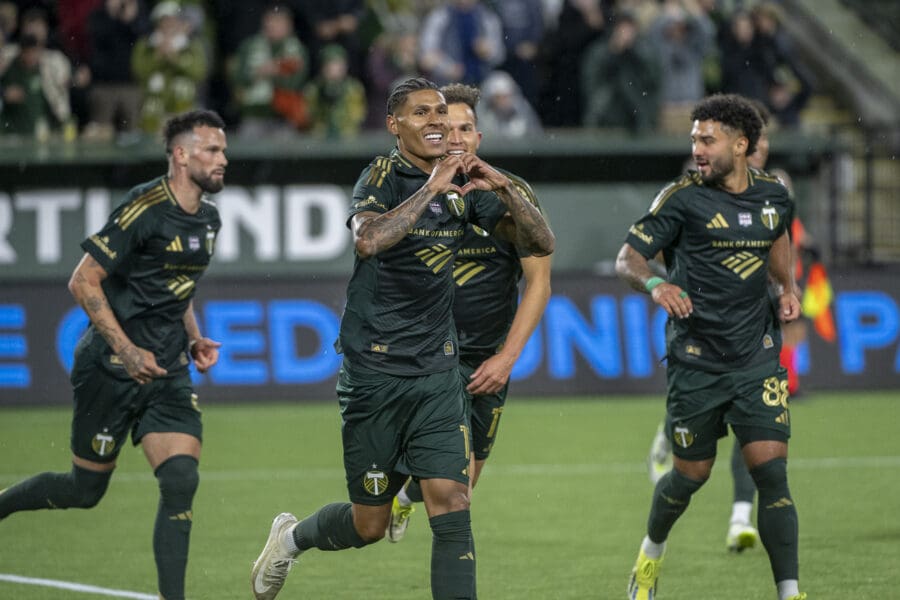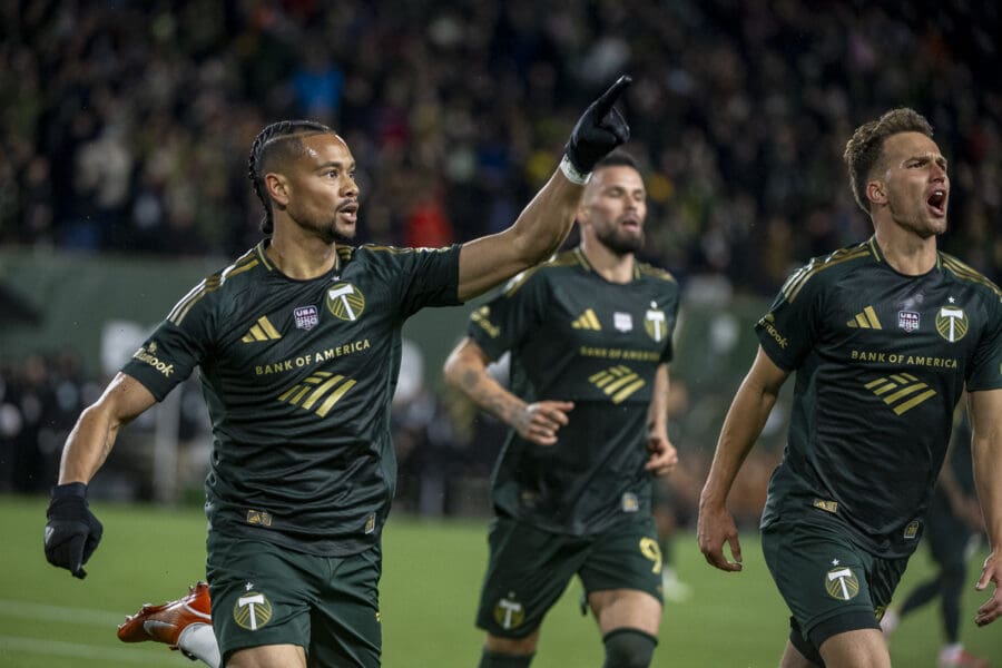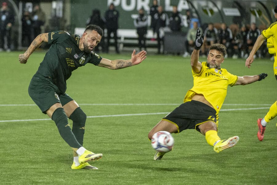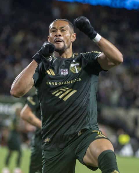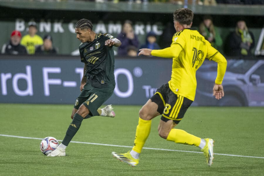 FEBRUARY 21, 2026 – PORTLAND, OR: Timbers winger Ariel Lassiter scores Portland’s winning goal during Columbus Crew at Portland Timbers for MLS Opening Week (Photo by Diego G Diaz).
