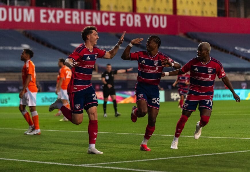 FRISCO, TX–It was a wild night Saturday at Toyota Stadium. Logan Farrington scored twice, then Houston scored thrice, and Petar Musa figured into the comeback as FC Dallas rallied for a 4-3 win over Houston Dynamo. It’s the fourth home match in FCD’s first five matches and they have gone 2-0-2 in those matches and are eighth at 2-1-2. Houston is one spot below at 2-2-0.