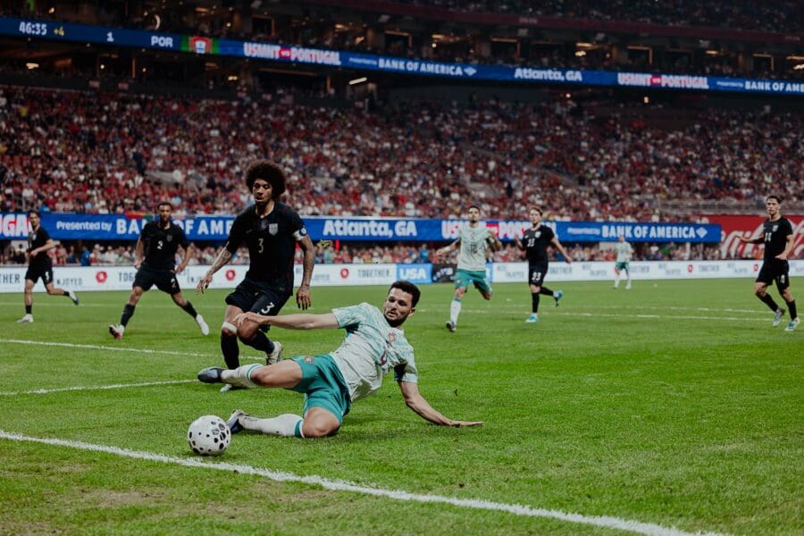 ATLANTA, GA–No Cristiano Ronaldo for Portugal, but there was Bruno Fernandes and he assisted on both goals in Portugal’s 2-0 win over the USA before 72,297 at Mercedes-Benz Stadium on Tuesday night.